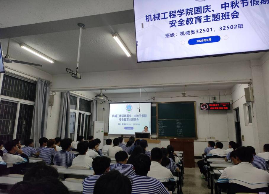 (通讯员 王雅宁)中秋、国庆双节将至,为增强学生安全意识,确保平安过节,机械工程学院于9月27日至9月29日组织全体本科生和研究生召开了假期安全教育主题班会。