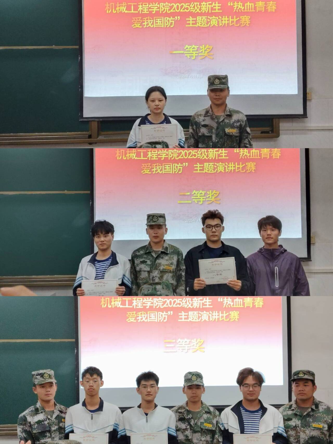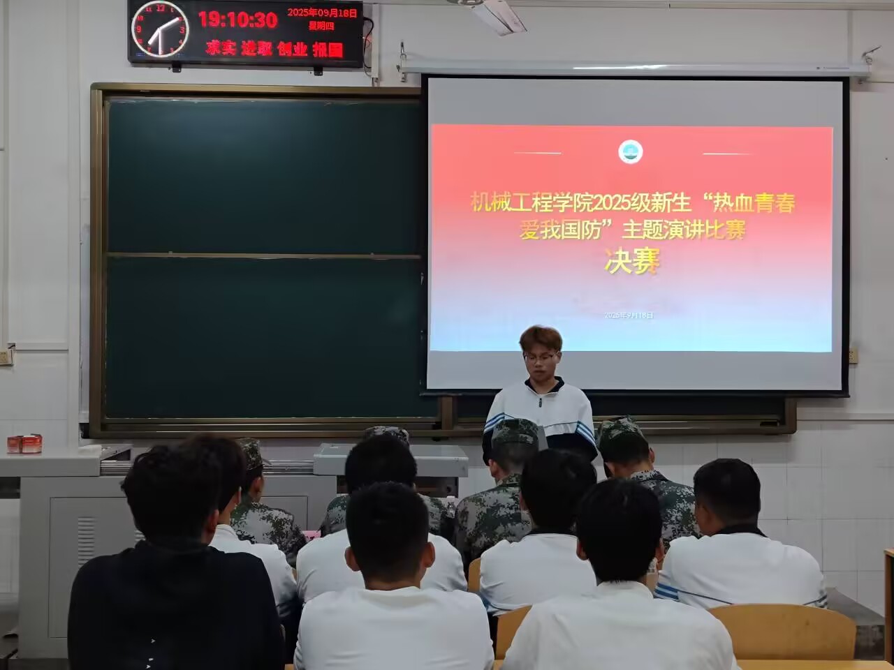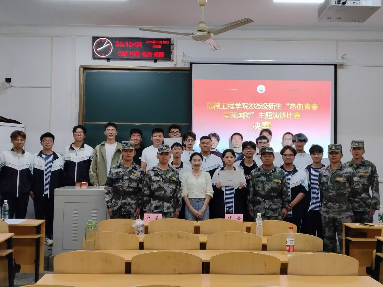 (通讯员 周小乐)2025年9月18日,长江大学机械工程学院为传承红色基因、培养爱国青年、巩固军训成果,成功举办 2025 级新生“热血青春 爱我国防”主题演讲比赛决赛。比赛由军训 6 个连队连长及 2025 级辅导员担任评委,各班级临时负责人代表参与见证。