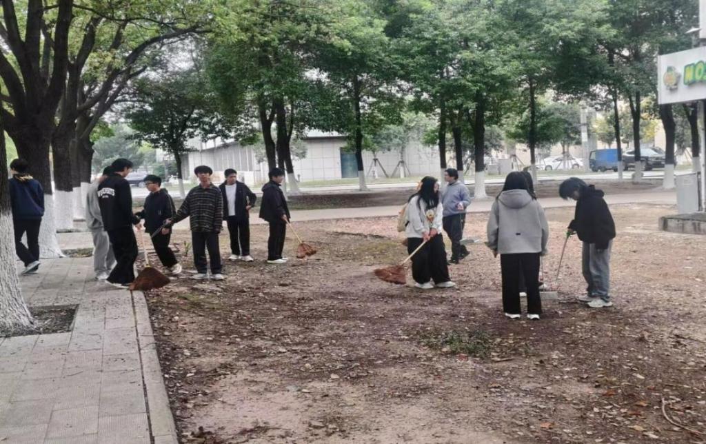 下午2时30分,同学们在生活委员的组织下,于指定区域整齐集结,手持清洁工具,精神饱满、整装待发。年级辅导员也来到现场,与同学们一同投身劳动,在身体力行中传递劳动价值,在言传身教中涵育劳动品格。