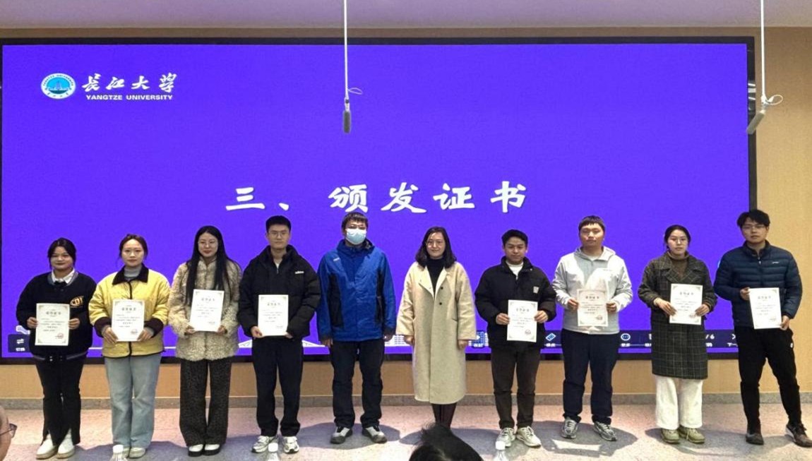 汇报结束后,机械工程学院施雷老师、艺术学院张江莉老师为汇报同学颁发证书并合影留念。
