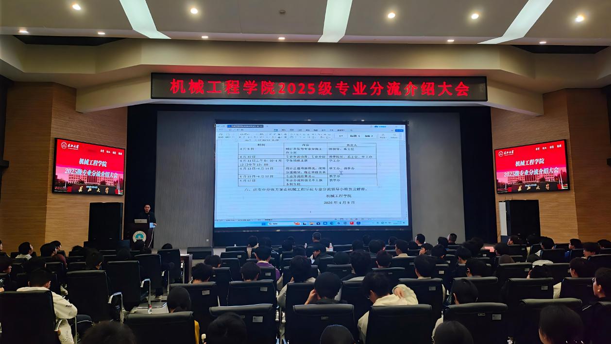 (通讯员:周小乐 付雨檬 )为帮助2025级机械类大类本科生深入了解学院专业分流后各专业人才培养方案、师资及就业情况等,明确未来发展规划,保障专业分流及志愿填报工作科学有序开展,长江大学机械工程学院于2026年4月10日在西校区1058报告厅召开专业分流介绍大会。学院2025级全体学生参加会议,学院副院长吕志鹏老师、党委副书记丁明霞老师、各系主任及教学办、学工办教师代表参加并进行宣讲与答疑。